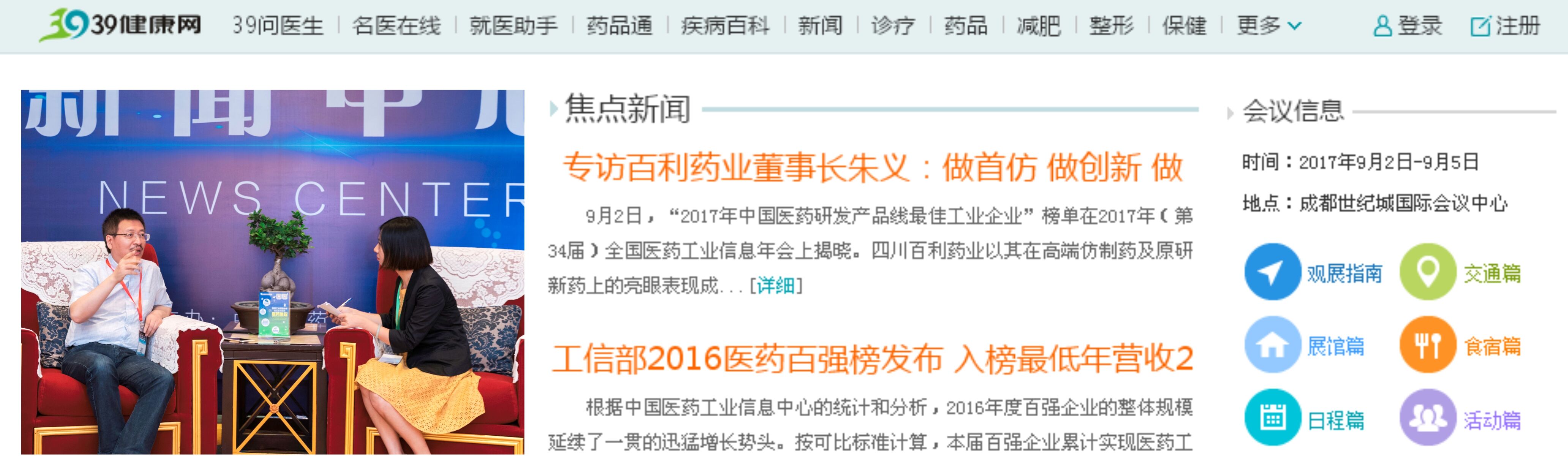 9月2日,“2017年中国医药研发产品线最佳工业企业”榜单在2017年(第34届)全国医药工业信息年会上揭晓。四川百利药业以其在高端仿制药及原研新药上的亮眼表现成为川籍药企代表入选。作为战略合作媒体,39健康网也在会后对百利药业董事长朱义进行了独家专访,倾听百利药业的创新之道。